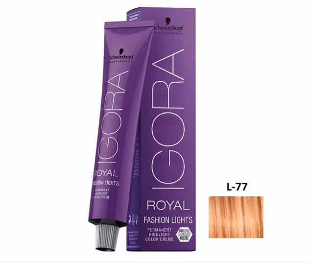 A Igora L77 faz parte da linha Fashion Lights da Igora Royal. É uma coloração cobre, muito utilizada para intensificar o ruivo na hora da coloração.